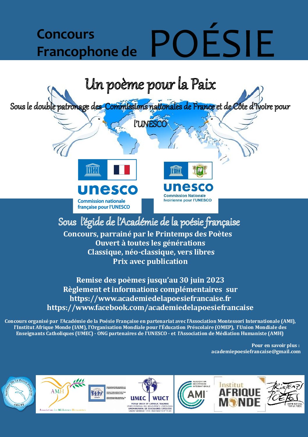 Pauline Ambrogi, ancienne représentante de MMM à l'UNESCO et soutien fidèle de notre association vous propose de prendre vos plumes et participer au concours de poésie de L’Académie de la Poésie França