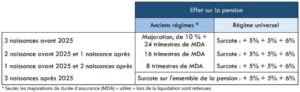 le remplacement des trimestres supplémentaires accordés aux mères par une majoration de points.