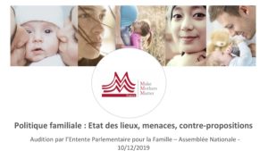Les deux porte-paroles de Make Mothers Matter (MMM) France, Marie-Laure Gagey-des Brosses et Emilie Perrier ont été auditionnées le 10 décembre 2019 à l’Assemblée Nationale par les députés de l’Entente Parlementaire pour la Famille.